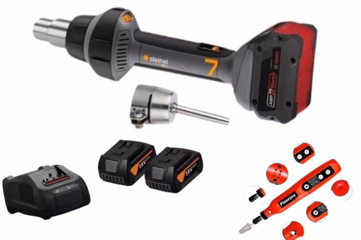 MH7 är en kraftfull, sladdlös varmluftssvets som levererar proffskvalitet – perfekt för golvläggare och hantverkare som arbetar på platser utan el.